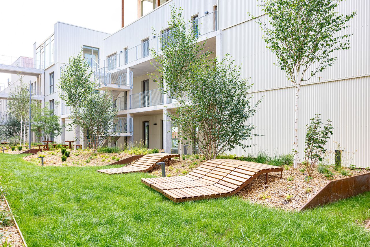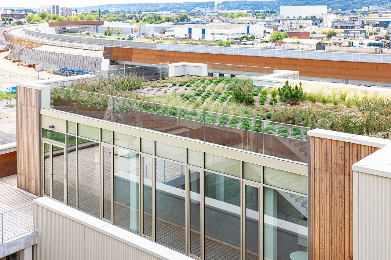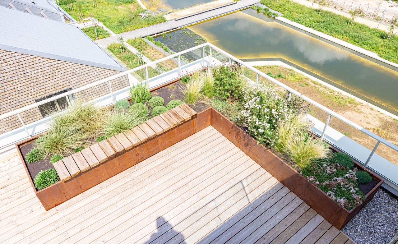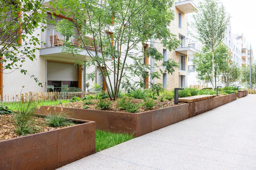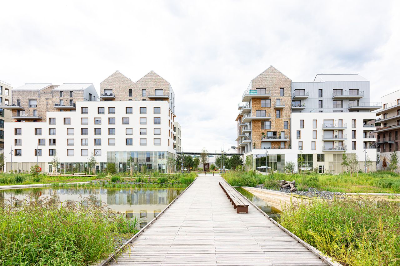 The Flaubert district was organized around a dual green and blue network of open spaces, representing more than two-thirds of the overall project area.