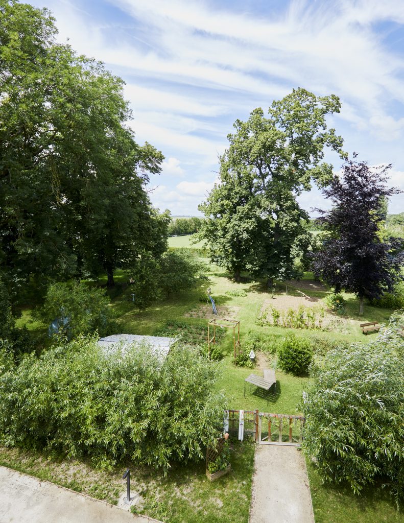 Los árboles presentes antes de nuestra intervención conforman un borde boscoso perfecto a lo largo de toda la parcela, que aísla el lugar en un entorno de verdor. De gran altura, las copas de los árboles alcanzan más de 10 metros.