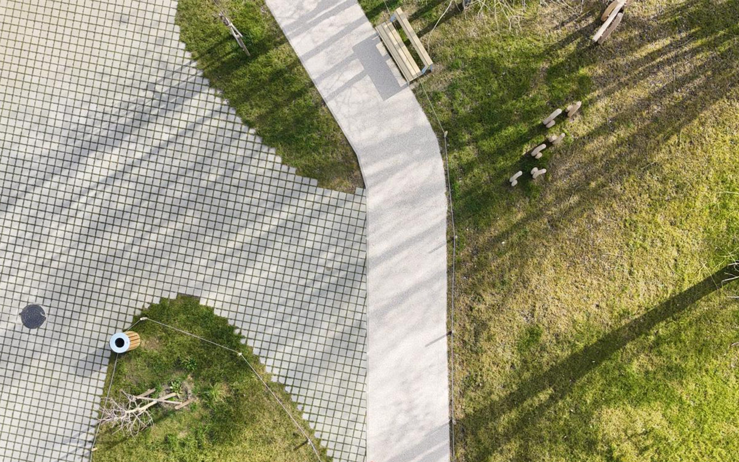 Les parvis des deux écoles sont protégés de l’espace public et sécurisés. Chacun dispose d’un abri vélos, tandis que les stationnements se situent à proximité immédiate sur l’espace public. L’accès logistique, situé à l’arrière du site, reprend l’ancien accès de la maternelle. Les circulations piétonnes et automobiles sont ainsi clairement dissociées, garantissant une sécurité optimale. Cet accès est également utilisé par les usagers extérieurs du gymnase.