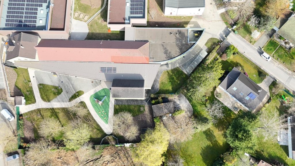 Au cœur de l’établissement, le projet réorganise et étend les locaux existants afin d’en améliorer le fonctionnement tout en optimisant les surfaces construites. L’espace situé entre les deux écoles, auparavant occupé par la cour élémentaire, accueille désormais les fonctions communes ainsi que la salle à manger de la maternelle.
