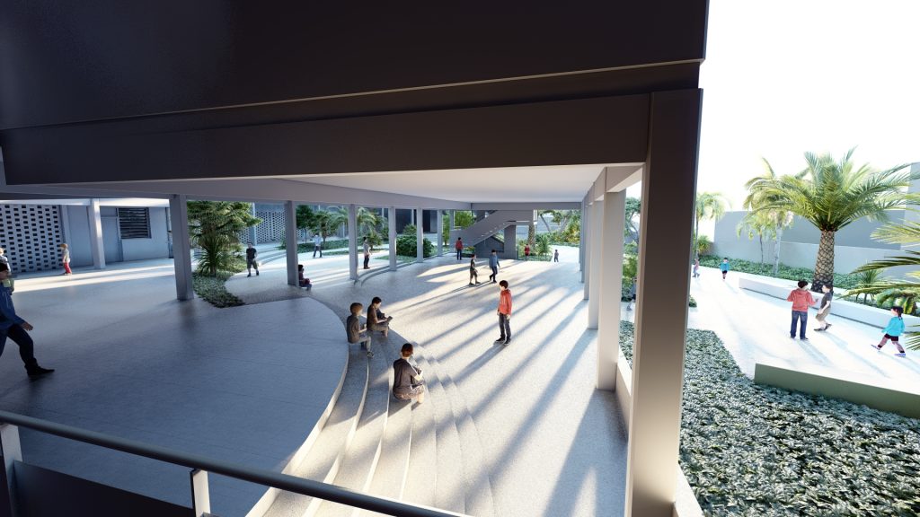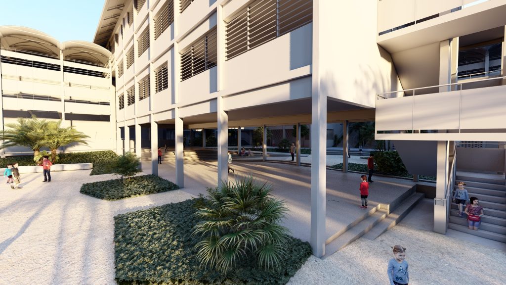 Ainsi conçu, le paysage du lycée de Bandradoua forme un cadre vivant et durable, où architecture, végétation et relief s’articulent pour composer un environnement d’apprentissage en lien direct avec la richesse naturelle de l’île.