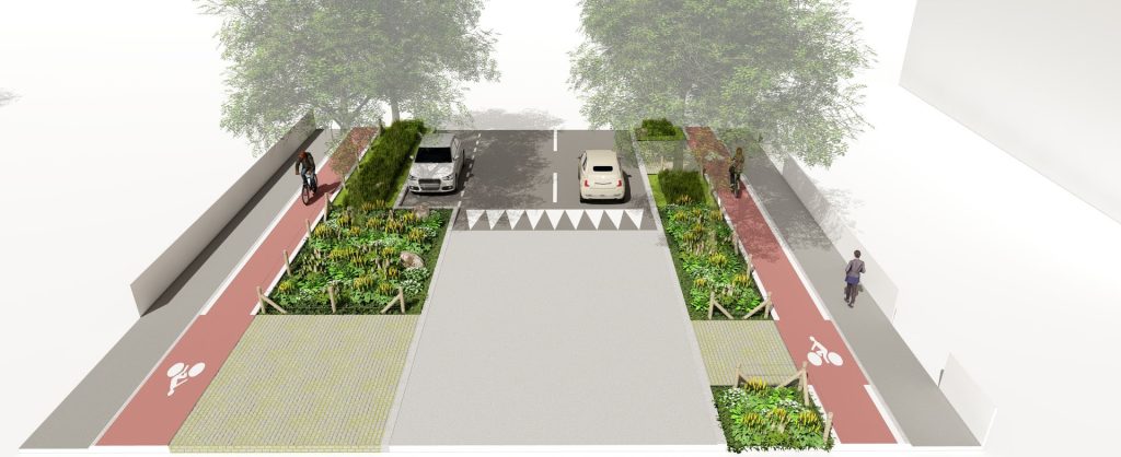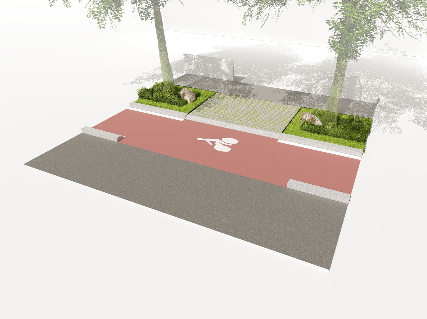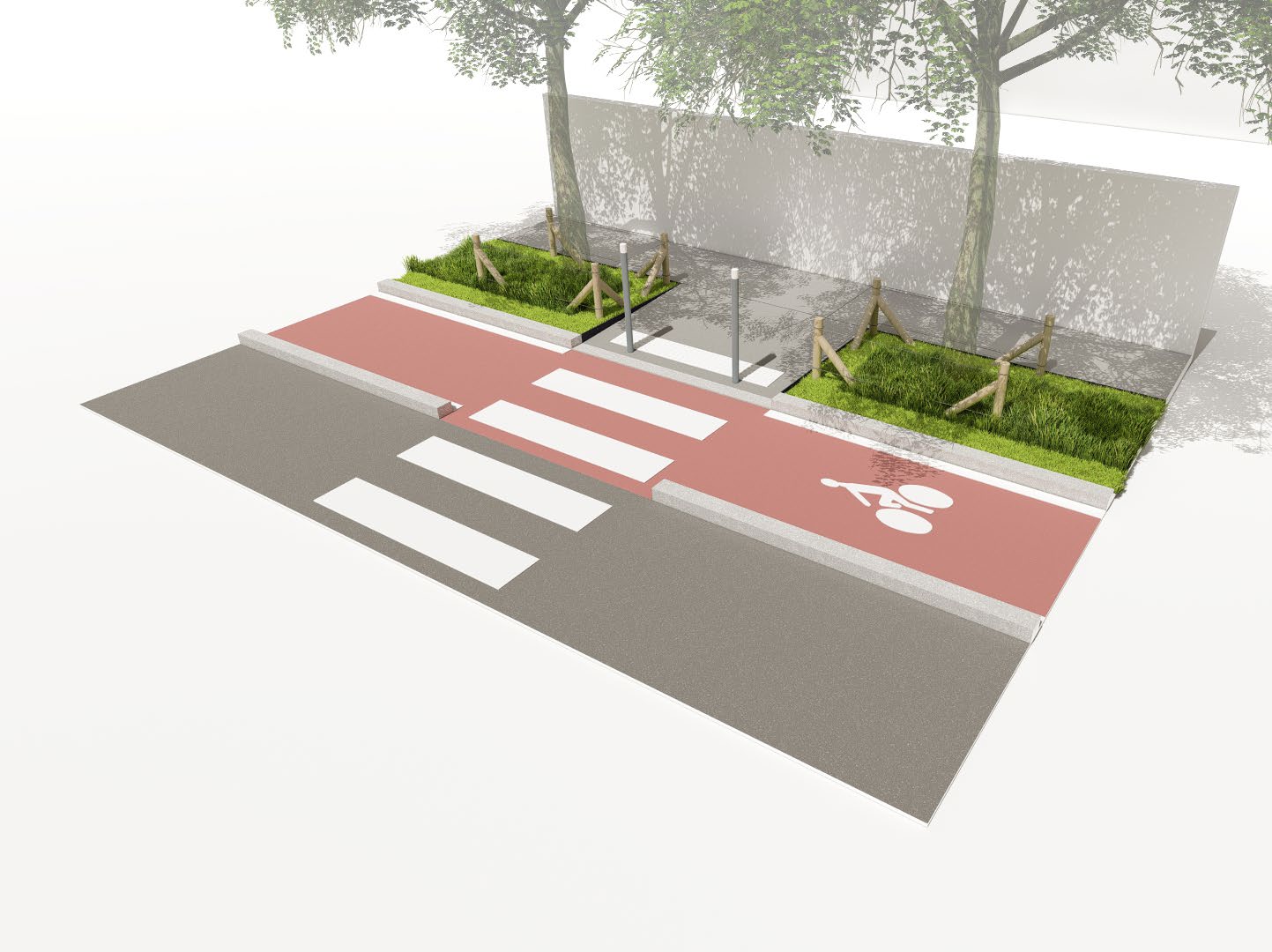 La stratégie d’aménagement se décline en plusieurs séquences, adaptées aux contextes urbains traversés. Elle articule des sections cyclables différenciées, une requalification des stationnements et une recomposition des profils de rue pour retrouver une échelle plus urbaine et qualitative.