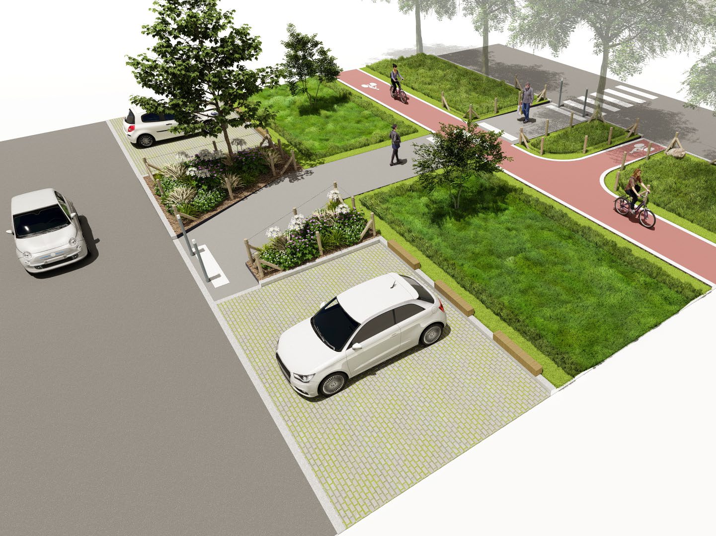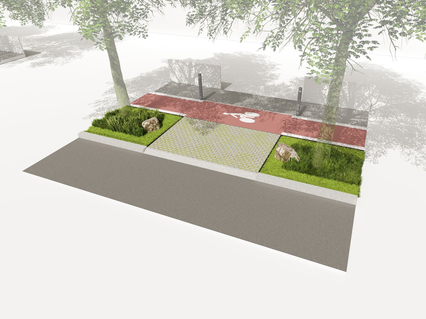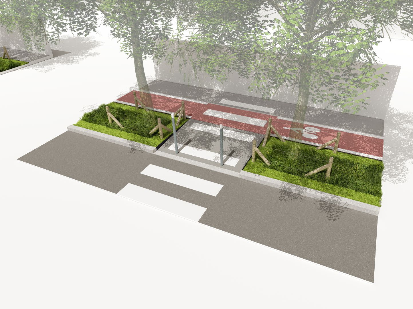 Le mobilier urbain joue un rôle clé dans cette transformation. À la fois fonctionnel et discret, il participe à la lecture des espaces et à la protection des zones plantées. Différentes variantes ont été étudiées, combinant poteaux bois, dispositifs métalliques ou enrochements, afin de trouver un équilibre entre efficacité, pérennité et intégration paysagère.