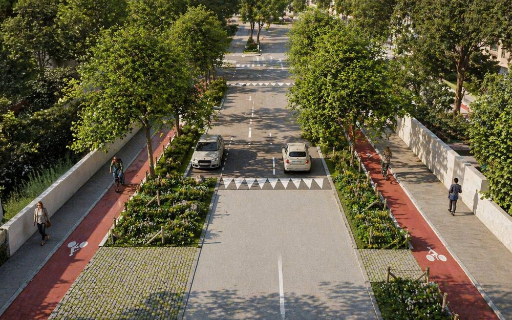 L’enjeu principal repose sur la reconfiguration des espaces de circulation, avec l’intégration de pistes cyclables sécurisées en site propre et une hiérarchisation claire des flux. Cette recomposition s’accompagne d’une attention particulière portée aux usages piétons, notamment aux traversées et à l’accessibilité des quais bus, aujourd’hui inadaptés.
